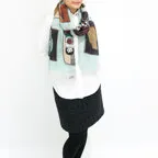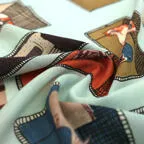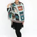 独創的なモチーフが描かれた遊び心のあるデザイン。どんな巻き方をしてもオシャレに決まります!