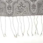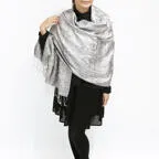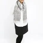 スタンダートな大判サイズで巻いても羽織っても、どちらも使いやすいタイプです。特に羽織は全体の印象がパッと華やかに、エレガントな雰囲気に変化します。