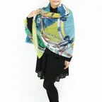 このストールは薄くて軽い生地です。使わないときは小さく折りたたみ、バッグに収納できます。外出先でも邪魔にならず、持ち運びにも便利です。