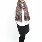 スタンダードなサイズ感で巻きでも羽織でも扱いやすく、室内のひざ掛けにも重宝します。用途を変えて様々な形で活用できる優れたストールです。