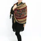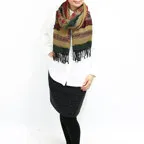 スタンダードな大判サイズで、首に巻くことはもちろん、室内でのひざ掛けにも、肩から羽織る使い方もできます。特に羽織りは、パッと華やかにエレガントな雰囲気に変わります。上半身を覆えるので、着ている服を気にせず合わせることができます。忙しい朝もコーディネートを気にする必要はありません。