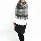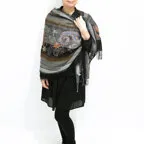 スタンダードな大判サイズで、首に巻くことはもちろん、室内でのひざ掛けにも、肩から羽織る使い方もできます。特に羽織りは、パッと華やかにエレガントな雰囲気に変わります。上半身を覆えるので、着ている服を気にせず合わせることができます。忙しい朝もコーディネートを気にする必要はありません。