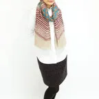 生地感よりカジュアルな普段使いにも、少しフォーマルなシーンでも使いやすいタイプです。スタイルや場所を問わず合わせることができる優れたストールです。