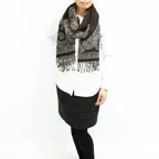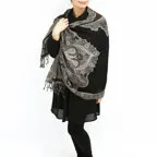 スタンダードな大判サイズで、首に巻くことはもちろん、室内でのひざ掛けにも、肩から羽織る使い方もできます。特に羽織りは、パッと華やかにエレガントな雰囲気に変わります。上半身を覆えるので、着ている服を気にせず合わせることができます。忙しい朝もコーディネートを気にする必要はありません。