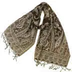 スタンダードな大判サイズで、首に巻くことはもちろん、室内でのひざ掛けにも、肩から羽織る使い方もできます。特に羽織りは、パッと華やかにエレガントな雰囲気に変わります。上半身を覆えるので、着ている服を気にせず合わせることができます。忙しい朝もコーディネートを気にする必要はありません。