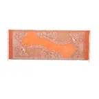 スタンダードな大判サイズで、首に巻くことはもちろん、室内でのひざ掛けにも、肩から羽織る使い方もできます。特に羽織りは、パッと華やかにエレガントな雰囲気に変わります。上半身を覆えるので、着ている服を気にせず合わせることができます。忙しい朝もコーディネートを気にする必要はありません。