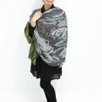 スタンダードなサイズ感で巻きでも羽織でも扱いやすく、室内のひざ掛けにも重宝します。用途を変えて様々な形で活用できる優れたストールです。