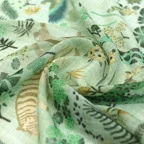 このストールは薄くて軽い生地です。使わないときは小さく折りたたみ、バッグに収納できます。外出先でも邪魔にならず、持ち運びにも便利です。