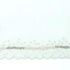 さらに木製のブロックプリントを用い、生地に下書きのデザインを写し、その上から複数の職人によって手刺繍が施されています。右手で鉤針を操り、左手で刺繍糸を扱い、一針一針丁寧にビーズ・パールを施し、繊細で美しいデザインを作り上げていきます。