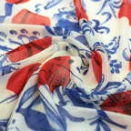 このストールは薄くて軽い生地です。使わないときは小さく折りたたみ、バッグに収納できます。外出先でも邪魔にならず、持ち運びにも便利です。