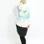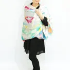 大判サイズのストールで肩から羽織る使い方もできます。春夏の日除けや室内の冷房対策としても使いやすくなっています。