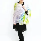 大判サイズのストールで肩から羽織る使い方もできます。春夏の日除けや室内の冷房対策としても使いやすくなっています。