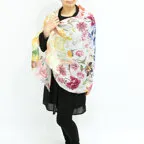 大判サイズのストールで肩から羽織る使い方もできます。春夏の日除けや室内の冷房対策としても使いやすくなっています。