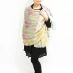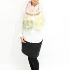 大判サイズのストールで肩から羽織る使い方もできます。春夏の日除けや室内の冷房対策としても使いやすくなっています。
