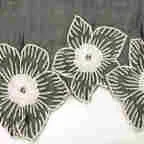 さらに木製のブロックプリントを用い、生地に下書きのデザインを写し、その上から複数の職人によって手刺繍が施されています。右手で鉤針を操り、左手で刺繍糸を扱い、一針一針丁寧に刺繍を施し、繊細で美しいデザインを作り上げていきます。