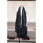 スタンダードな大判サイズと軽やかな質感で、巻きだけでなく羽織でも合わせやすいタイプです。トップスがほのかに透けて見え、上品な印象を与えてくれます。