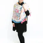 スタンダードな大判サイズで巻きでも羽織でもどちらでも使いやすくなっています。特に春夏の日除けや冷房対策としても使いやすく、ファッションのアクセントとしてなら一年中使うことができます。