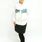 生地の厚みと刺繍の重量感も手伝って、すとんと流れるような落ち感が絶妙です。ゴワゴワせずスッキリとした印象を作り出すことができます。