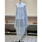 サイズの大きなショールサイズでゆるっと巻くだけで立体感のある表情を作り出すことができます。また羽織では上半身をすっぽりと覆うことができ、野外での日除け対策や冷房対策としても重宝します。
