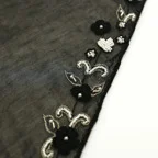手仕事で製作をしているため、稀にステッチ部分のほつれやビーズが外れる恐れがございます。また、生地や刺繍部に薄い汚れが付着する可能性がございます。