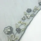 さらに木製のブロックプリントを用い、生地に下書きのデザインを写し、その上から複数の職人によって手刺繍が施されています。右手で鉤針を操り、左手で刺繍糸を扱い、一針一針丁寧にビーズ・パールを施し、繊細で美しいデザインを作り上げていきます。