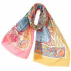 スタンダードな大判サイズで巻きでも羽織でもどちらでも使いやすくなっています。特に春夏の日除けや冷房対策としても使いやすく、ファッションのアクセントとしてなら一年中使うことができます。