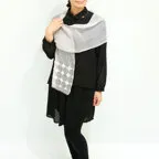 難しいテクニックなしで”巻くだけで素敵に見える”一枚。優しい色使いと清楚なパール&刺繍が魅力の一枚です。