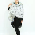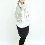 大判サイズのストールで肩から羽織る使い方もできます。春夏の日除けや室内の冷房対策としても使いやすくなっています。