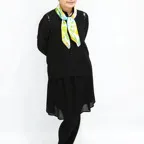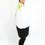 65cm×65cmの小判スカーフで、アスコットタイのようにシャツやブラウスの中におさめて使うこともできます。室内でも巻いたままでいられるので使いやすくなっています。