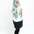 大判サイズのストールで肩から羽織る使い方もできます。春夏の日除けや室内の冷房対策としても使いやすくなっています。