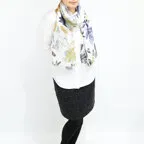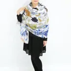 大判サイズのストールで肩から羽織る使い方もできます。春夏の日除けや室内の冷房対策としても使いやすくなっています。