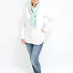 ごく薄手なのに首周りをバランスよく包む程よいボリューム感があり、空気を含んで暖かいので、シーズンを問わず一年を通して使うことができます。