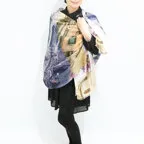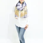 大判サイズのストールで肩から羽織る使い方もできます。春夏の日除けや室内の冷房対策としても使いやすくなっています。