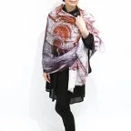 大判サイズのストールで肩から羽織る使い方もできます。春夏の日除けや室内の冷房対策としても使いやすくなっています。