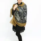 大判サイズのストールで肩から羽織る使い方もできます。春夏の日除けや室内の冷房対策としても使いやすくなっています。