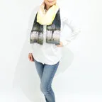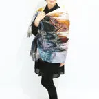 大判サイズのストールで肩から羽織る使い方もできます。春夏の日除けや室内の冷房対策としても使いやすくなっています。