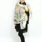 大判サイズのストールで肩から羽織る使い方もできます。春夏の日除けや室内の冷房対策としても使いやすくなっています。