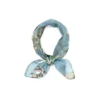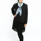 小ぶりなスクエアサイズで、アスコットタイのようにシャツやブラウスの中におさめて使うこともできます。室内でも巻いたままでいられるので使いやすくなっています。