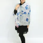 大判サイズのストールで肩から羽織る使い方もできます。春夏の日除けや室内の冷房対策としても使いやすくなっています。