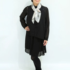 65cm×65cmの小判スカーフで、アスコットタイのようにシャツやブラウスの中におさめて使うこともできます。室内でも巻いたままでいられるので使いやすくなっています。