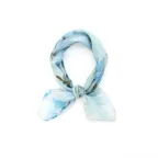 65cm×65cmの小判スカーフで、アスコットタイのようにシャツやブラウスの中におさめて使うこともできます。室内でも巻いたままでいられるので使いやすくなっています。