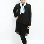 しっとりとしたやわらかい生地感で、肌に沿うような質感に仕上がっています。狙ったシルエットを出しやすく、取り扱いがしやすいスカーフです。