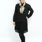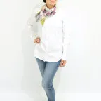 65cm×65cmの小判スカーフで、アスコットタイのようにシャツやブラウスの中におさめて使うこともできます。室内でも巻いたままでいられるので使いやすくなっています。