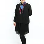 65cm×65cmの小判スカーフで、アスコットタイのようにシャツやブラウスの中におさめて使うこともできます。室内でも巻いたままでいられるので使いやすくなっています。