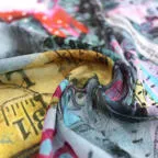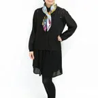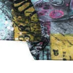 コーディネートしやすいステンカラーベースのデザインスカーフ。多色使いで首元のアクセントに最適です。