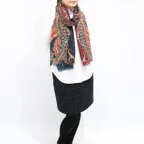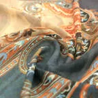 深みのある色使いとダイナミックなデザインのコンビネーションが絶妙な一枚。どんな巻き方をしてもオシャレに決まります!