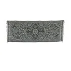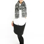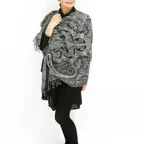 スタンダードな大判サイズで、首に巻くことはもちろん、室内でのひざ掛けにも、肩から羽織る使い方もできます。特に羽織りは、パッと華やかにエレガントな雰囲気に変わります。上半身を覆えるので、着ている服を気にせず合わせることができます。忙しい朝もコーディネートを気にする必要はありません。