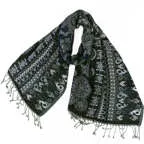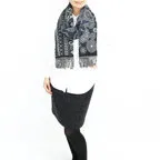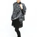 異なる柄を組み合わせた独創的なデザイン。同トーンでシックにまとめた趣向を凝らしたストールです。