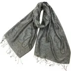 落ち着いたカラーで着回し抜群のきれいめストール。鈍く光る光沢が大人の気品を漂わせます。