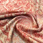 糸そのものの美しい光沢感を活かし、ジャカード織機で製作された繊細で上品なペイズリーデザインが装いに洗練された印象を与えてくれます。